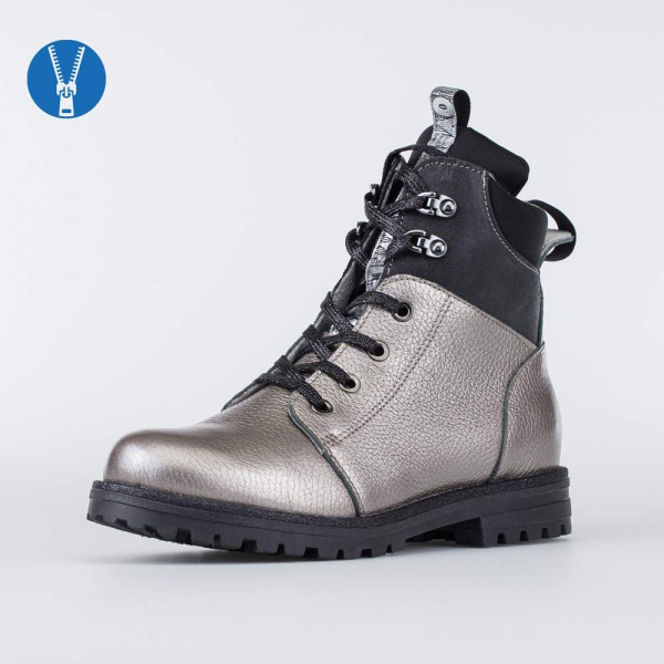 Лаконичные ботиночки из натуральной гладкой кожи с подкладкой из байки, с содержанием шерсти 80%. Удобная застежка-молния позволяет легко обувать и снимать ботинки, а функциональная шнуровка обеспечит идеальную фиксацию обуви на стопе. Мягкий манжет создает комфорт при ходьбе и предотвращает натирание ножки ребенка. Дополнительную защиту от осенней прохлады придаёт войлочная стелька, которую можно вытащить для просушки, воспользовавшись специальной петлёй. Подошва клеевая, с небольшим каблучком, выполнена из термоэластопласта – легкого, прочного материала, обладающего отличным амортизирующим и теплосберегающим эффектом. Эта модель сочетает яркую, но благородную расцветку со стильным дизайном и удобством.