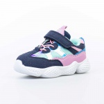Кроссовки для девочки сине-розового цвета с верхом из комбинации высококачественных искуственных материалов и вставками из сетчатого текстильного материала. -Все ответственные детали верха: носочная часть, элементы крепления и часть задника из искусственной кожи комбинированы менее ответственными деталями из текстильных материалов. - Застёжка- \'велькро\' и шнуровка из резинки обеспечивают плотное прилегание обуви по ноге. - Мягкий манжет создает комфорт при ходьбе и предотвращает натирание ножки ребенка. - Подкладка из текстиля дарит ногам комфорт и уют. - Кожаная формованная стелька обладает гигроскопичными свойствами. - Материал подошвы - необыкновенно легкая ЭВА, которая позволяет добиться необходимой легкости, мягкости и эластичности. Метод крепления подошвы - клеевой. Модные отделки придают обуви стильный современный вид.